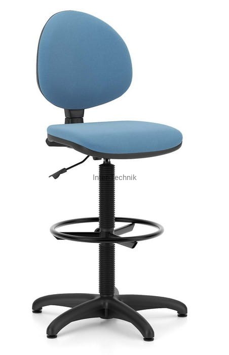 Krzesło specjalistyczne. Miękkie tapicerowane siedzisko i oparcie. Mechanizm PST01-CPW: permanentnego kontaktu. Opis działania tutaj: PST-01 cpw. Regulowana wysokość oparcia i głębokość siedziska za pomocą śruby. Metalowa obręcz pod stopy o regulowanej wysokości. Podstawa czarna nylonowa na stopkach.
