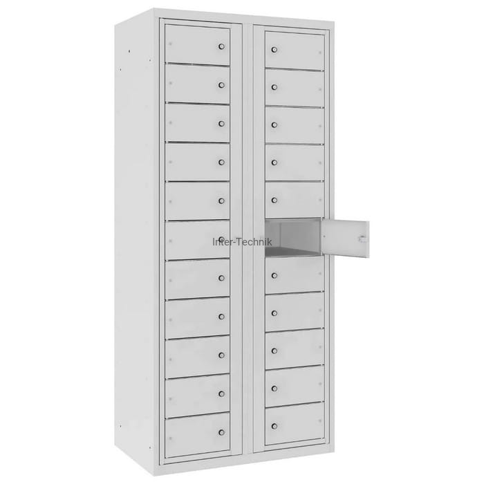 Szafa do przechowywania czystej odzieży. Wykonana z blachy stalowej gr. 0,8 – 1,0 mm. Rama drzwi, w której osadzane są drzwiczki skrytek jest wykonana z blachy gr. 2,0 mm. Każda skrytka zamykana niezależnym kluczem. Otwarcie wszystkich skrytek umożliwia w/w rama z centralnie zamontowanym zamkiem.