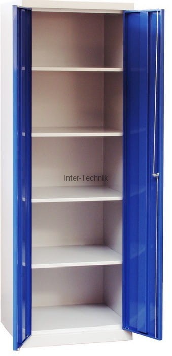 Szafka socjalna – gospodarcza zamykana zamkiem cylindrycznymi z ryglowaniem w 2 punktach. Szafa wyposażona w 4 stałe półki.