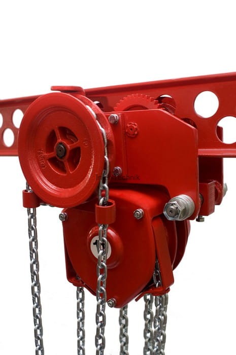 Łańcuch nośny wykonany ze specjalnej stali stopowej obrabianej cieplnie o najwyższych parametrach wytrzymałości wg DIN 5684 - klasa 8.